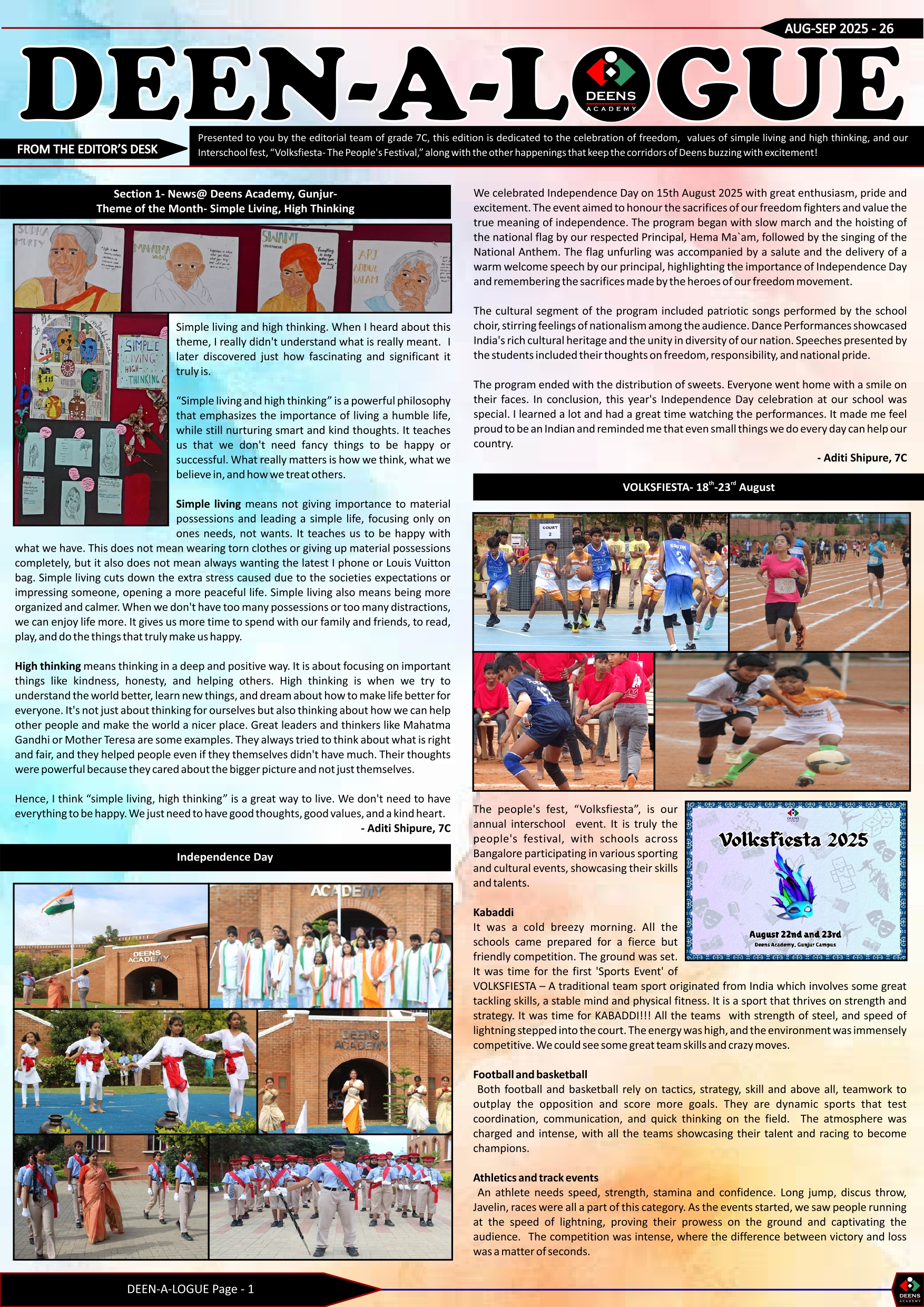 The editorial team of grade 7A takes great pride and joy in bringing the first newsletter of the academic year 2025-26! The newsletter captures the vibrancy and exuberance of life on campus, along with the other happenings that keep the corridors of Deens buzzing with excitement.