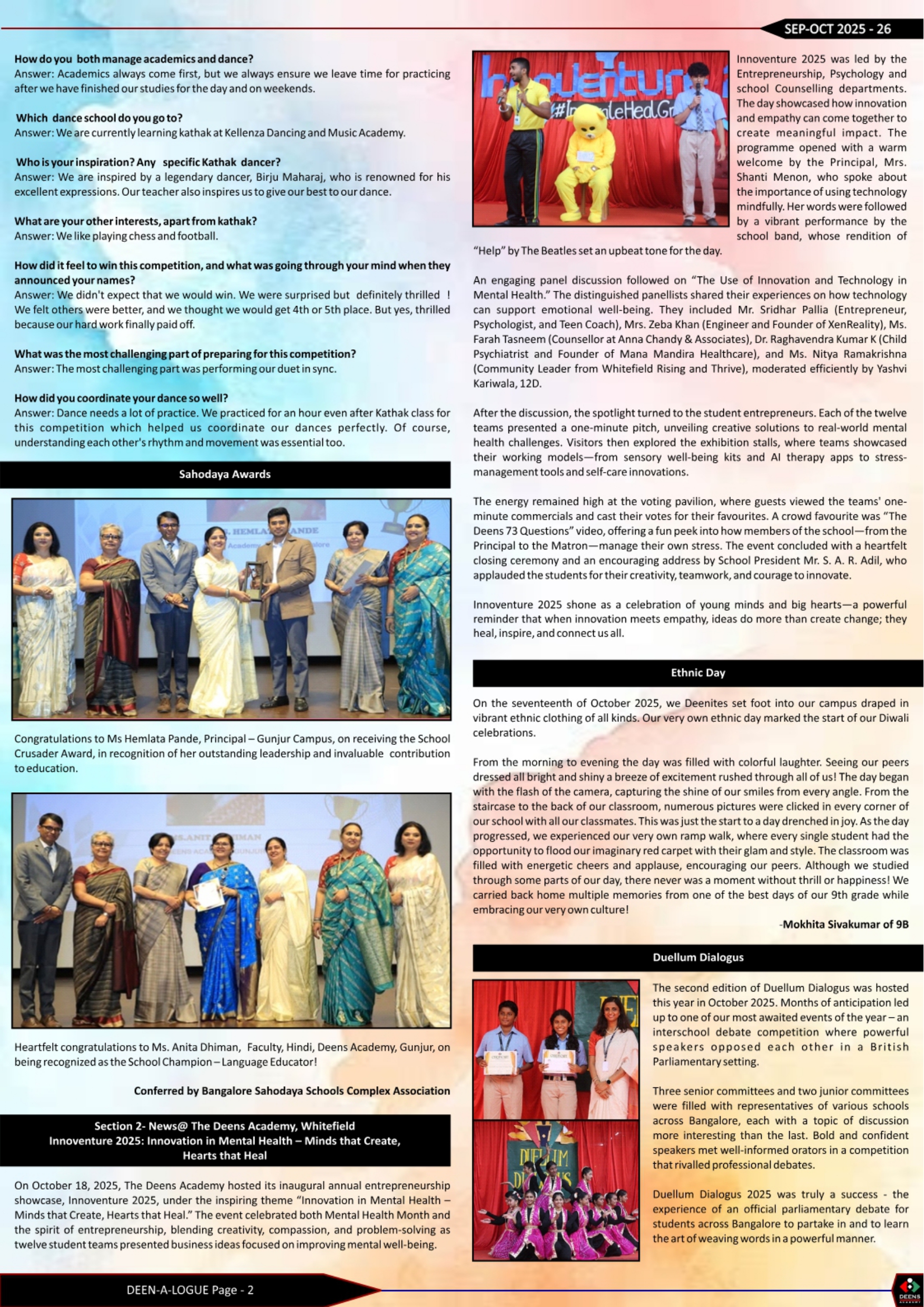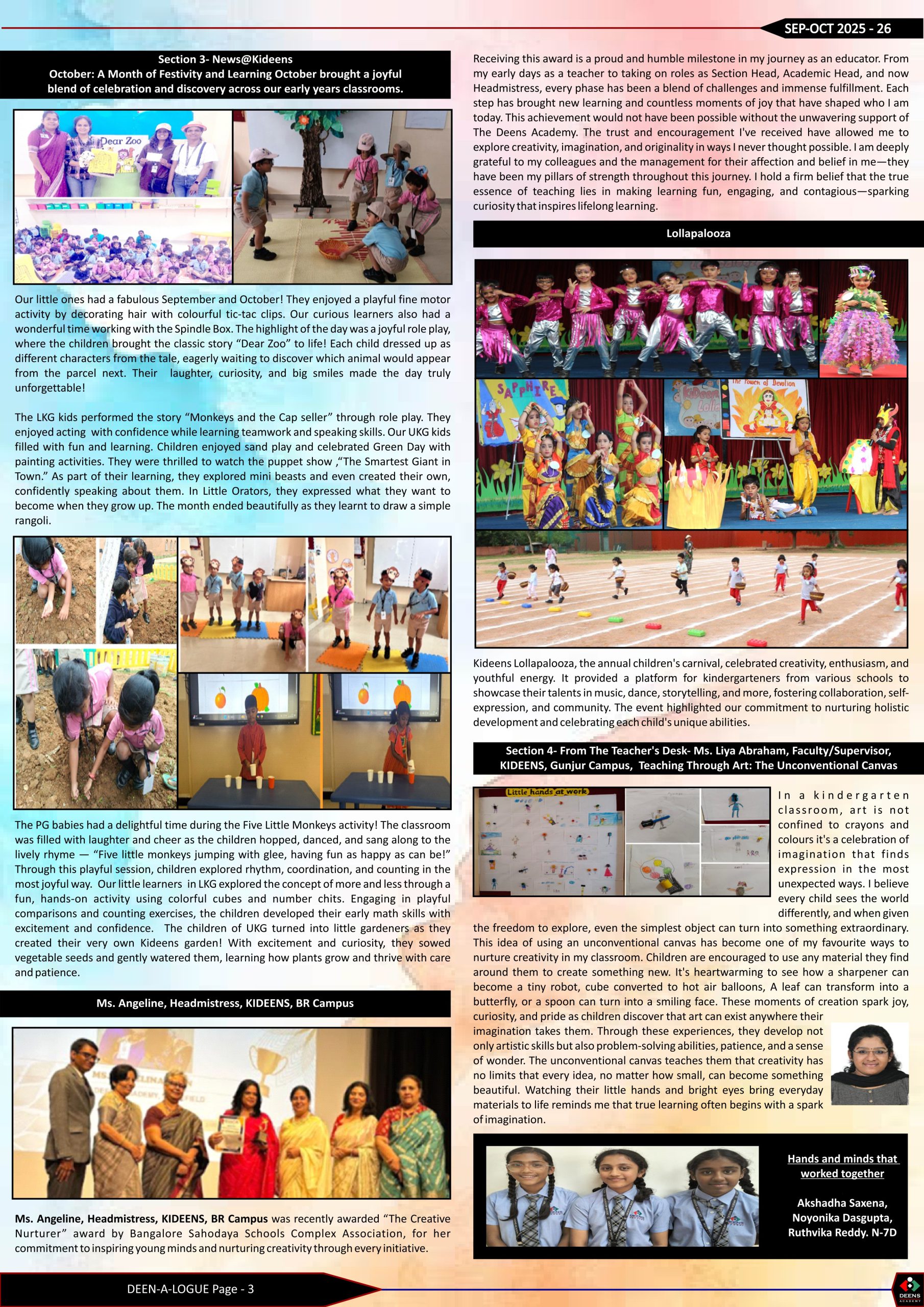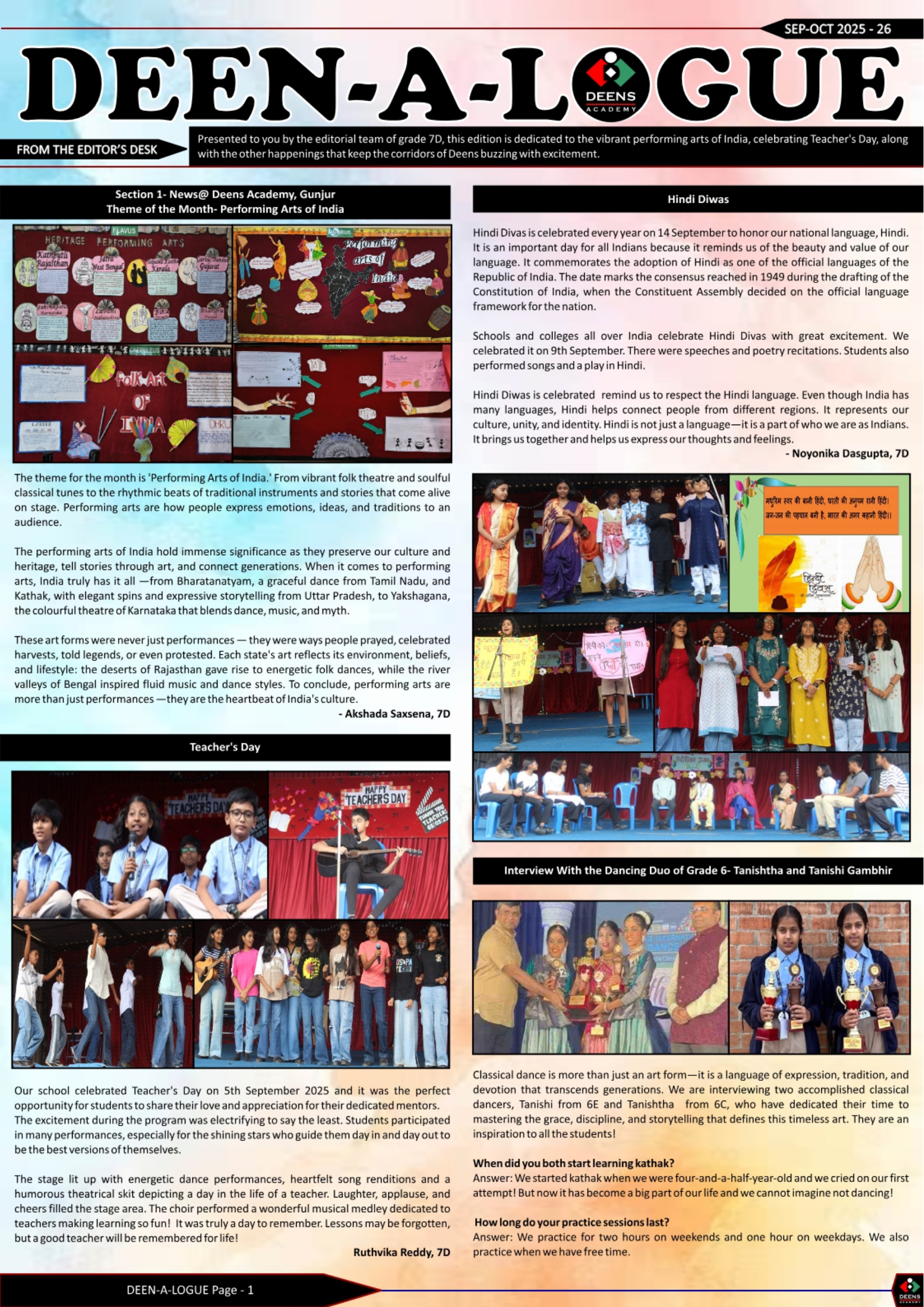 The editorial team of 7D takes great pride and joy in bringing the September- October edition of the newsletter. This edition captures the vibrancy and exuberance of life on campus, along with the other happenings that keep the corridors of Deens buzzing with excitement- Teacher’s Day, Hindi Diwas and a host of other interesting activities.